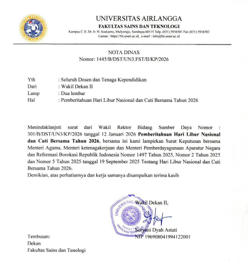 Surat Edaran Tentang Wisuda 253 Universitas Airlangga 1 Juli 2025, 13:45 Penulis : – Powered